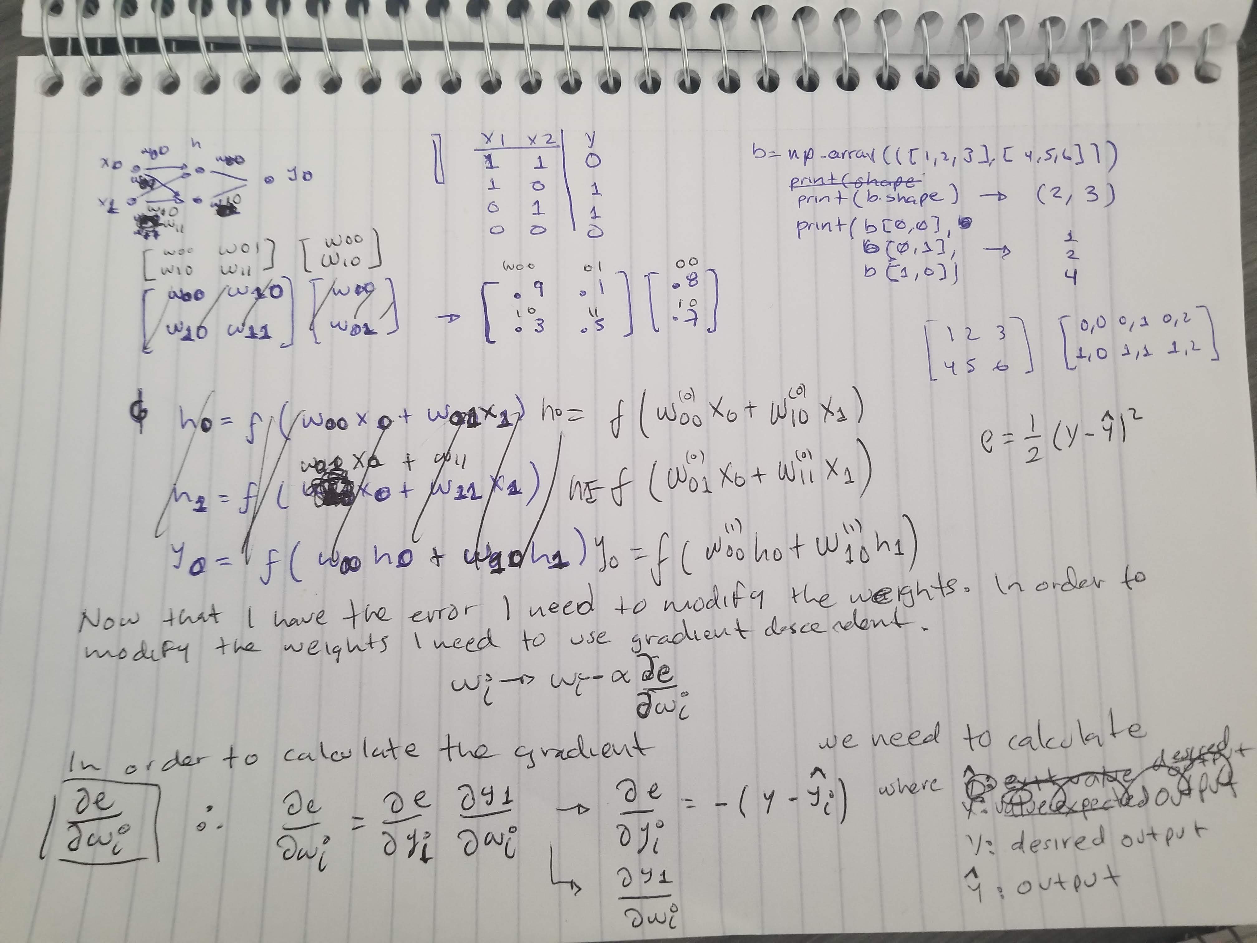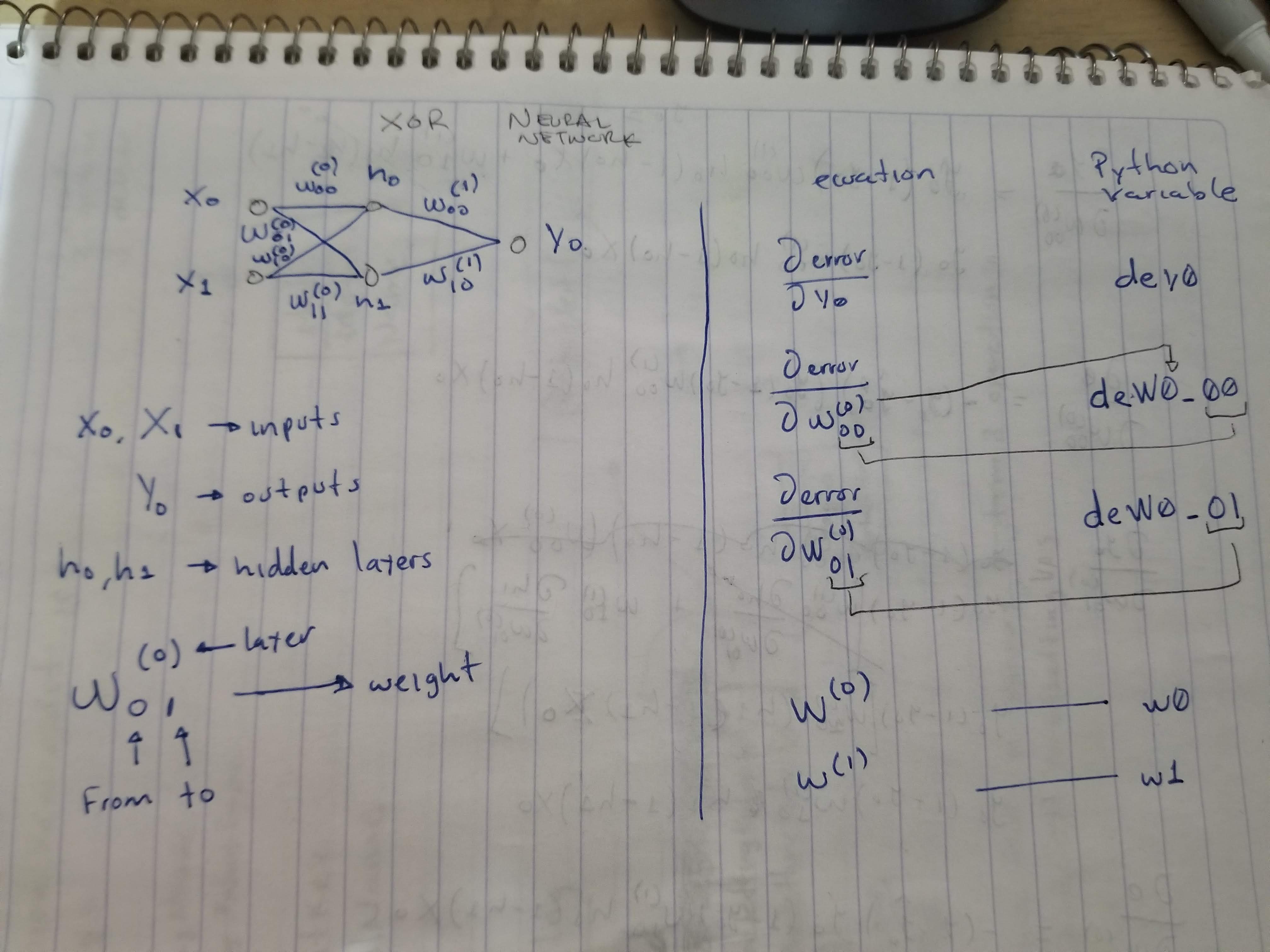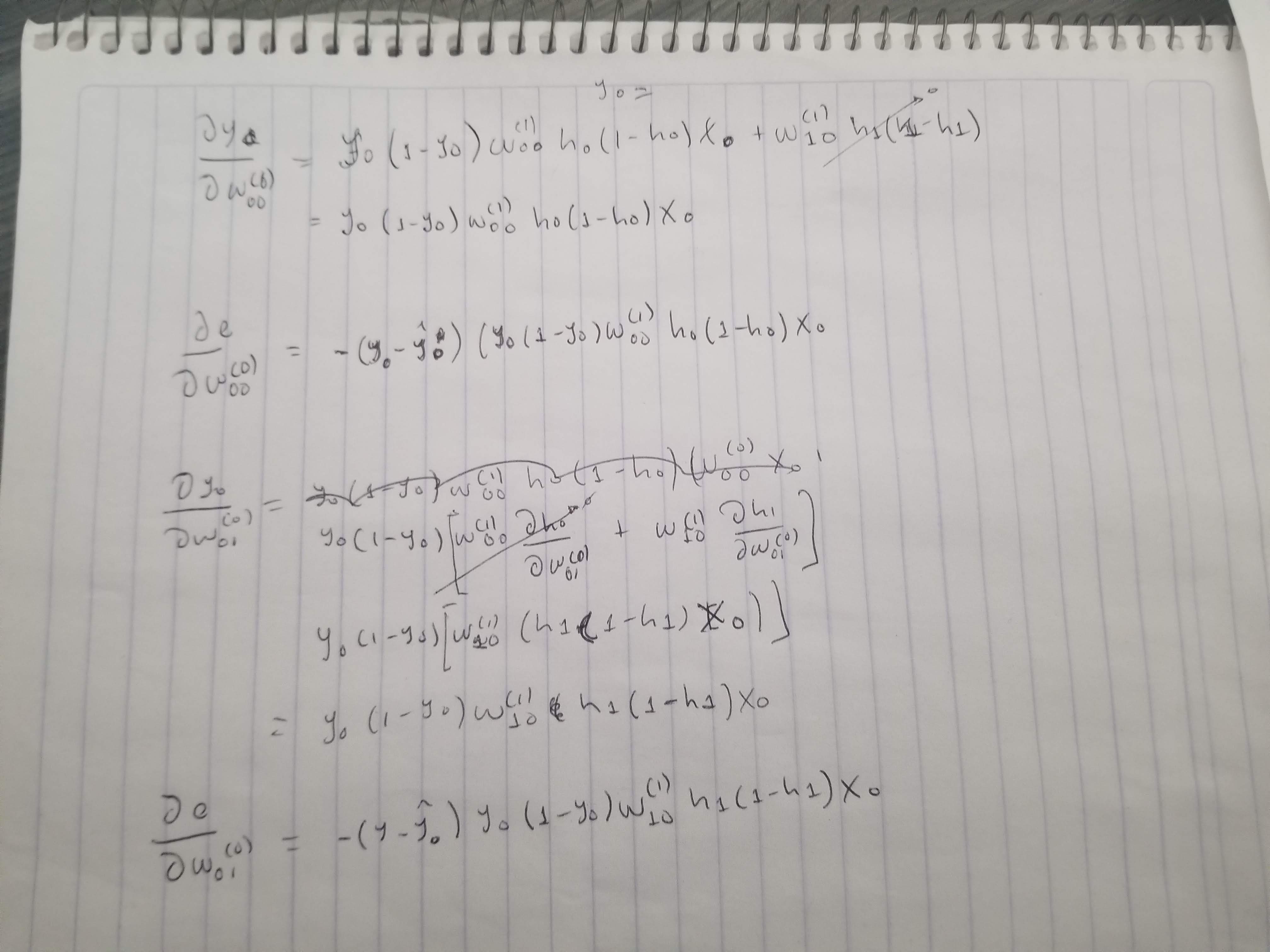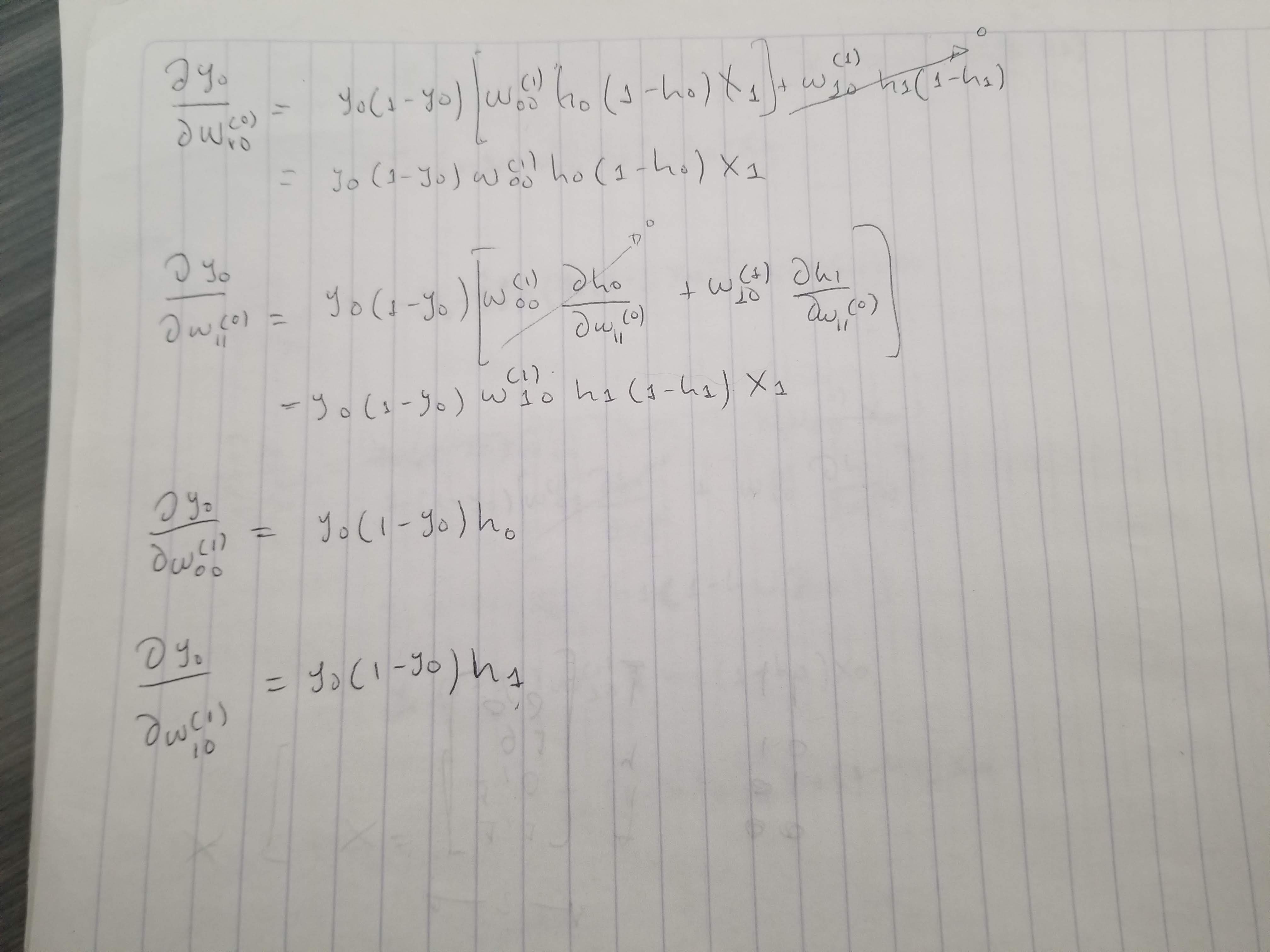 deW0_10 = dey0 * y0 * (1 - y0) * w1[0] * h0 * (1 - h0) * X[i][1]