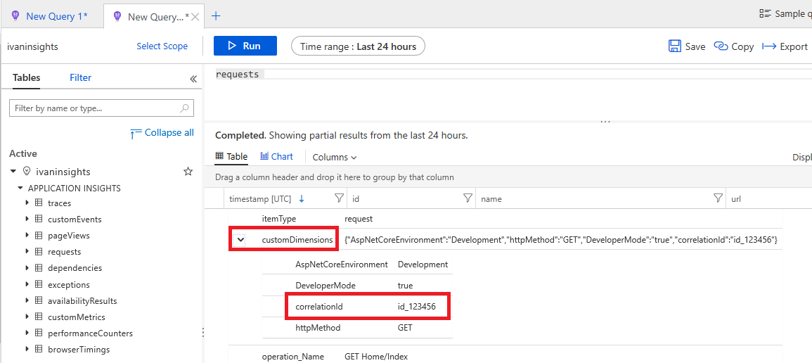 requestTelemetry.Properties.Add("correlationId", "id_123456");