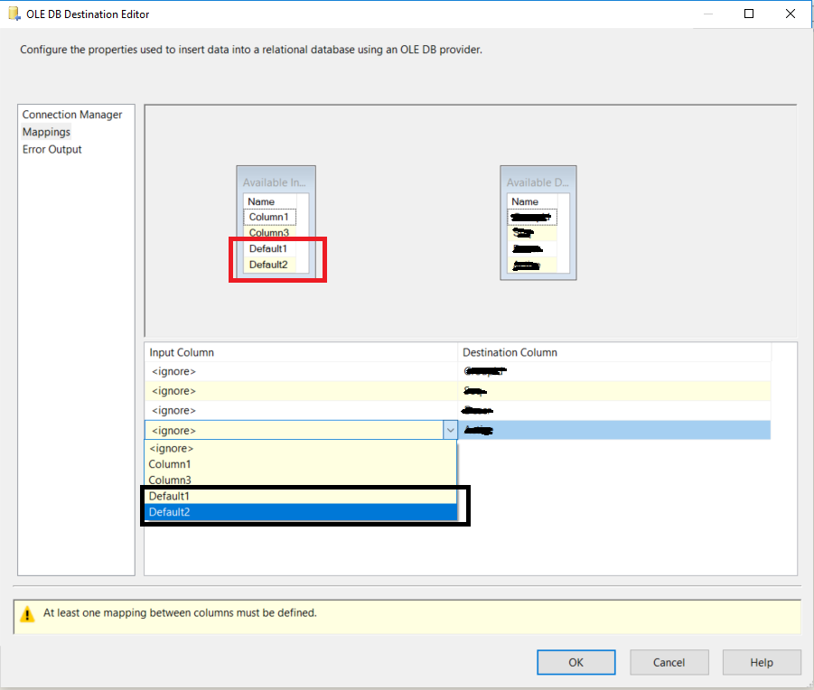 在映射时,它只显示可用的输入列,无法在执行重新插入时为某些文件设置硬编码值。怎么能做到这一点。