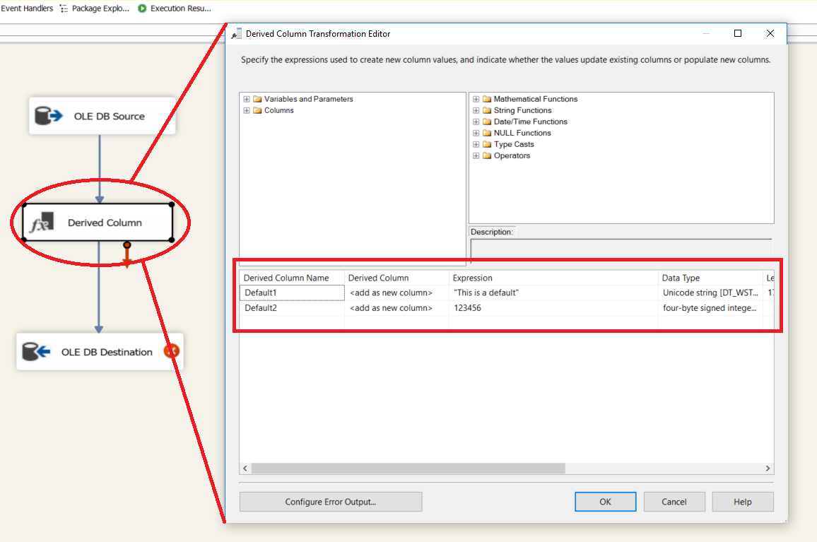 把它放在你的来源和目的地之间。双击它,您可以添加列和默认值。将表中的“派生列”选项保留为“添加为新列”