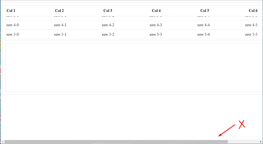 我遇到的问题是,表和它的垂直卷轴工作得很好,但是由于某些原因,我无法水平滚动容器,相反,水平滚动默认出现在页面的末尾(不是容器的末尾,而是页面的末尾)。