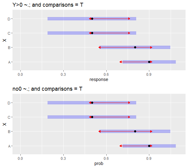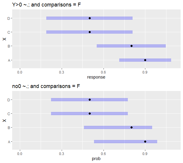 p3 <- plot(em3, comparisons = T) + scale_x_continuous(limits = c(0,1.1)) + ggtitle("Y>0 ~.; and comparisons = T")
