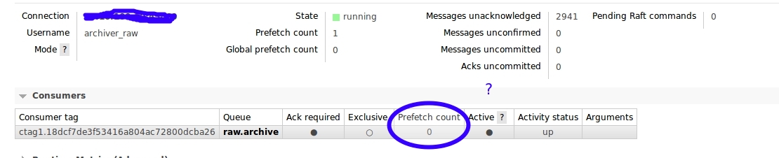第二个视图显示,使用者没有预取计数。但是在连接上设置了预取计数。也许我必须把它设置为消费者,但我不知道,如何设置这个。