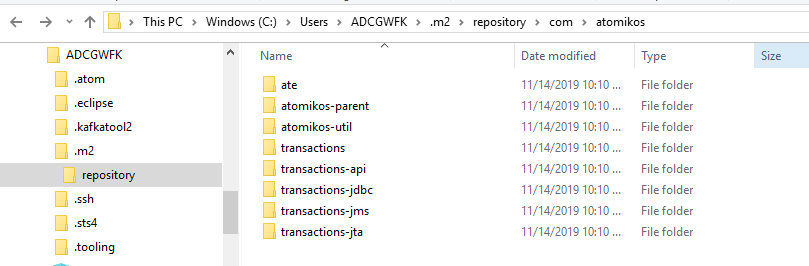 </project>下面也是Maven在本地回购中为atomikos和spring-boot-starter-jta-atomikos提供的内容