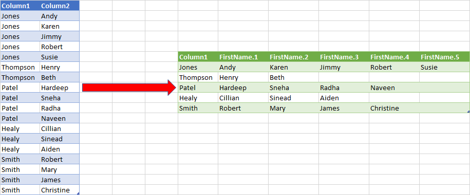 #"Changed Type1" = Table.TransformColumnTypes(#"Split Column by Delimiter",{{"FirstName.1", type text}, {"FirstName.2", type text}, {"FirstName.3", type text}, {"FirstName.4", type text}, {"FirstName.5", type text}})