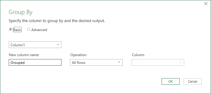 #"Grouped Rows" = Table.Group(#"Changed Type", {"Column1"}, {{"Grouped", each _, type table [Column1=text, Column2=text]}}),