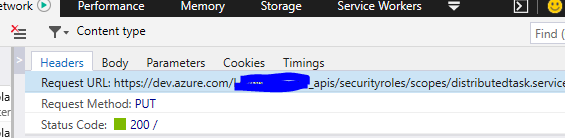 Put https://dev.azure.com/<Org>/_apis/securityroles/scopes/distributedtask.serviceendpointrole/roleassignments/resources/<resourcesId>?api-version=5.1-preview.1"API没有文档化。但是,当您F12浏览器时,您可以找到它。