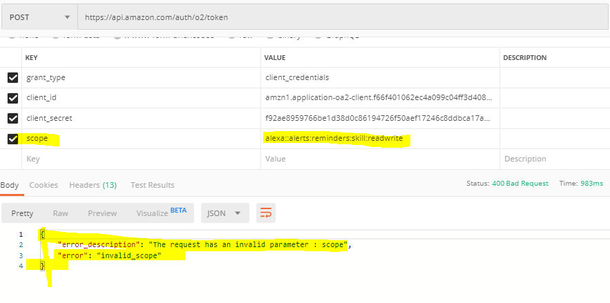 grant_type=client_credentials&client_id=**************************&client_secret=************************&scope=alexa%3A%3Aalerts%3Areminders%3Askill%3Areadwrite