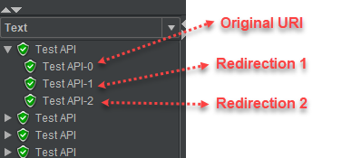 我正在使用JMeter访问一个API。我正在访问的URI (TestAPI-0)将返回302 Found并将其重定向到Test 1,后者将再次返回302 Found并将其重定向到Test 2。如果一切正常,测试API-2将返回200 OK。