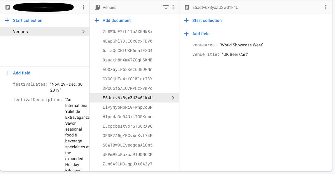 我还包括了我的Fi还原数据结构的图像。理想情况下,我想展示按"venueArea“分类的场馆。