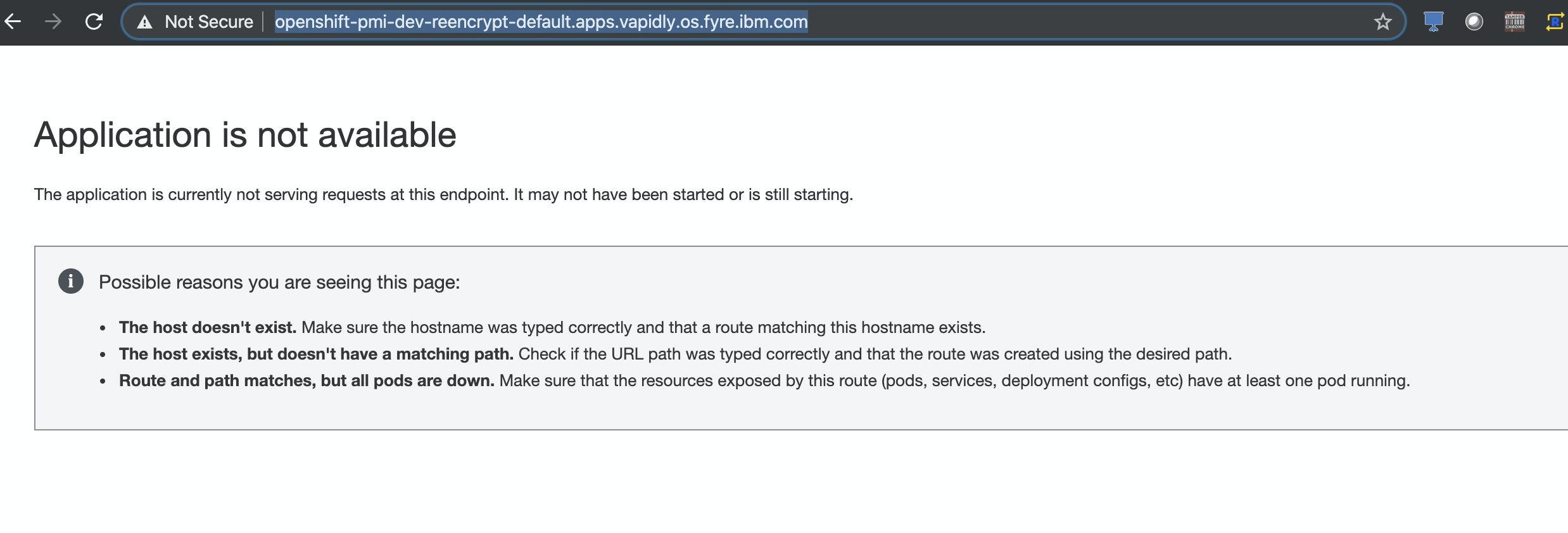 我已经建立了一条用重加密TLS终止的路由。对服务端点(https://openshift-pmi-dev-reencrypt-default.apps.vapidly.os.fyre.ibm.com)的调用导致: