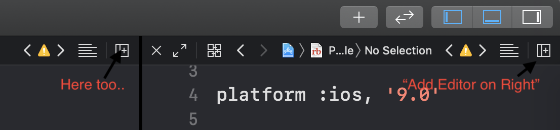 这似乎只是当前项目的一个问题(可能是一些混乱的.xcodeproj设置?)。打开另一个项目,我可以看到“右边的添加编辑器”很好。