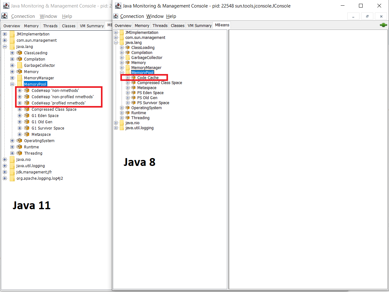 正如您通过Jconsole看到的,在内存池中没有更多的代码缓存可用,需要一些关于它的替换的详细信息,以及在哪里可以找到更多有关更改的详细信息?