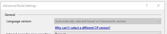 Error CS8370 Feature 'coalescing assignment' is not available in C# 7.3.