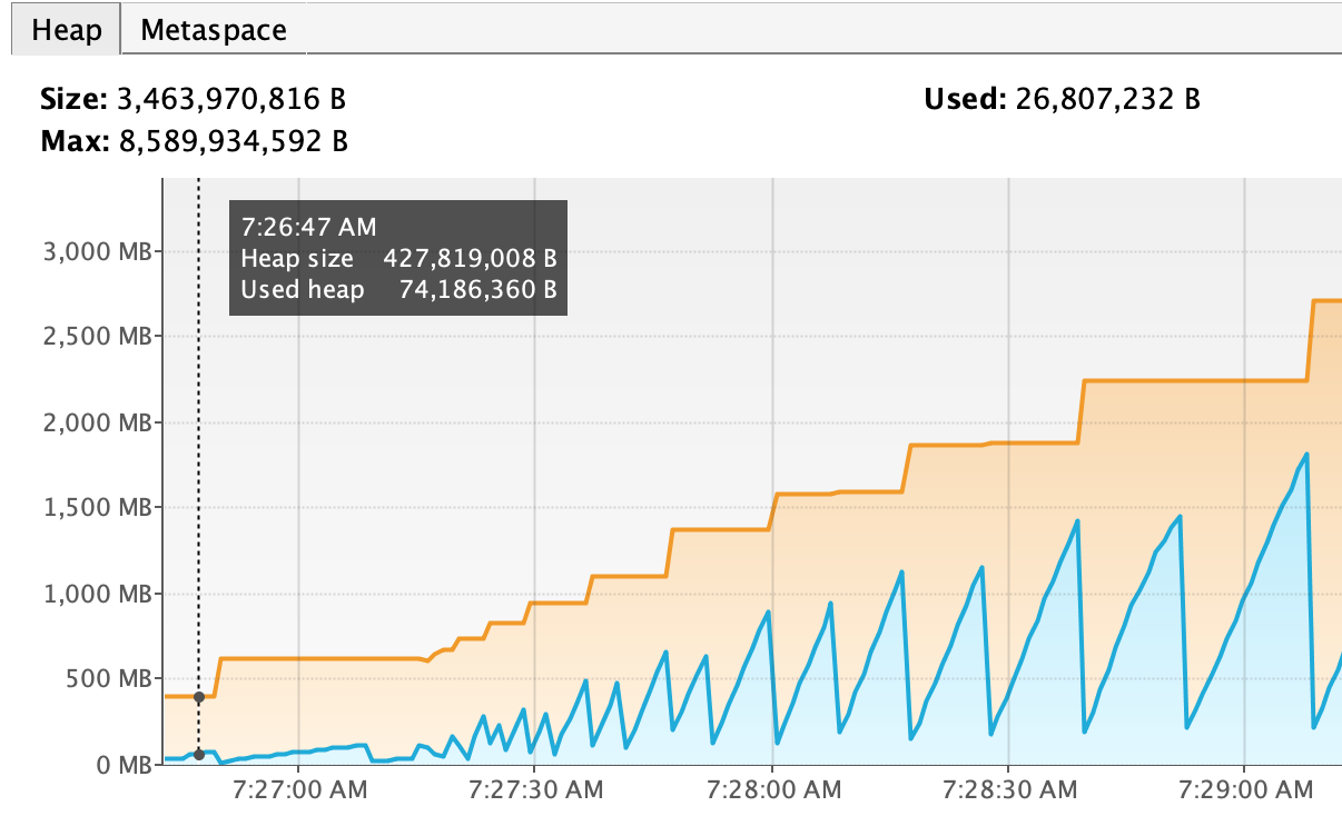 sttp.response(asFile(file, false))1Gb文件顺序加载的VisualVM图。