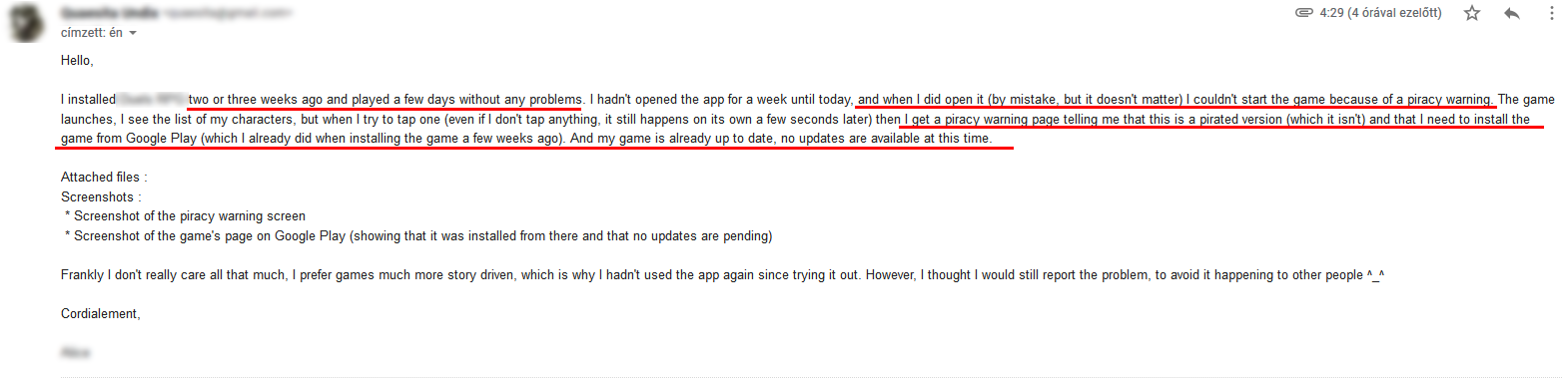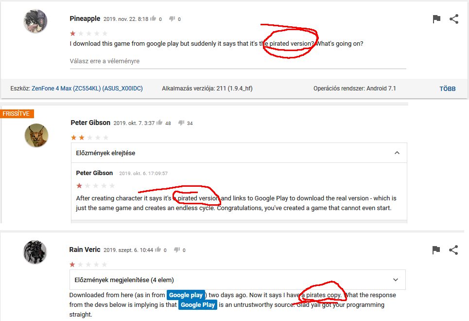 在我的应用程序的Google页面上,我有很多用户评论说,他们已经从Google商店安装了该应用程序,但是他们收到了盗版警告信息。