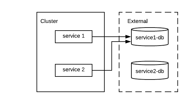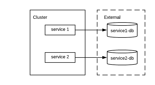 我们的集群中有两个服务位于同一个名称空间中,每个服务都使用自己的数据库,如下所示: