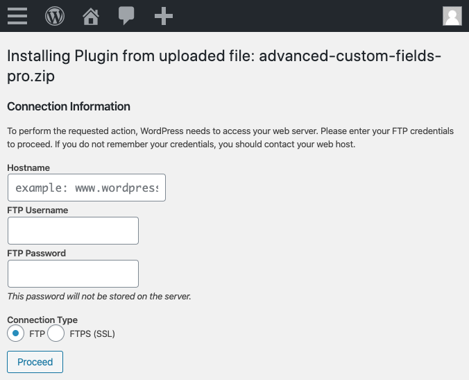 - wordpress但我有麻烦,如何上传插件,因为它要求我的FTP凭证。