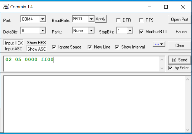 编辑:我意识到您实际上想使用函数代码05 (写线圈)。要做到这一点,您应该使用write_bit函数来代替: