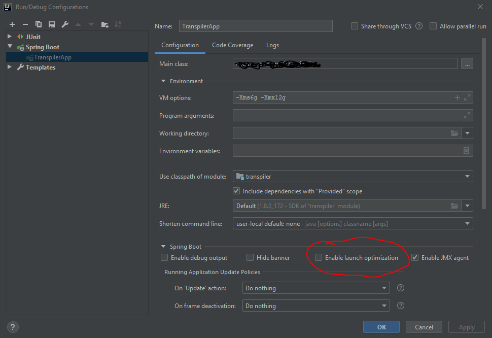 jvm_args: -agentlib:jdwp=transport=dt_socket,address=127.0.0.1:61805,suspend=y,server=n -Xms1g -Xmx12g -XX:TieredStopAtLevel=1 -Xverify:none -Dspring.output.ansi.enabled=always -Dcom.sun.management.jmxremote -Dspring.jmx.enabled=true -Dspring.liveBeansView.mbeanDomain -Dspring.application.admin.enabled=true -javaagent:C:\Users\robaina\.IntelliJIdea2019.2\system\captureAgent\debugger-agent.jar -Dfile.encoding=UTF-8