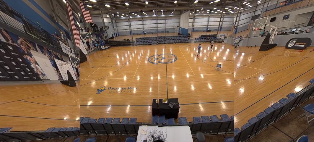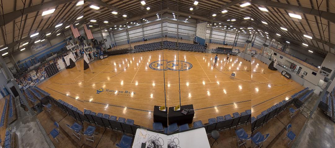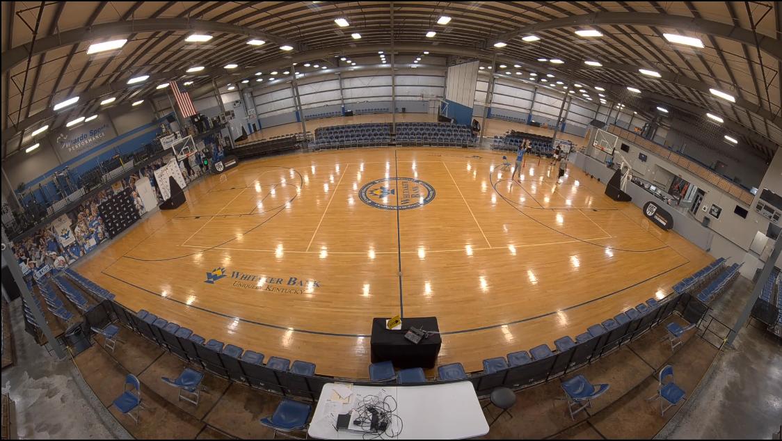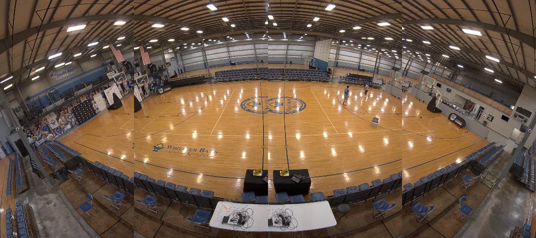 我注意到的第一件事是,简单地切片图像和覆盖这四个部分并不完美,因为某些线条的曲率不匹配。例如,中场线在第二层向左弯曲,在第三层向右弯曲.这个弯曲看起来像一个桶形畸变,所以我尝试使用参数化的透镜校正函数(将k1、k2和k3传递给OpenCV)和使用伦斯芬。由于伦斯芬数据库不包括我的相机制作或型号(这是一个轴向相机),而且我也不知道镜头的制作或模型(它是作为相机的一部分制造的),所以我编写了一个小脚本,使用各种参数的镜头来转储测试图像,然后浏览数千的输出图像,直到我找到一个看起来相对直线的图像: