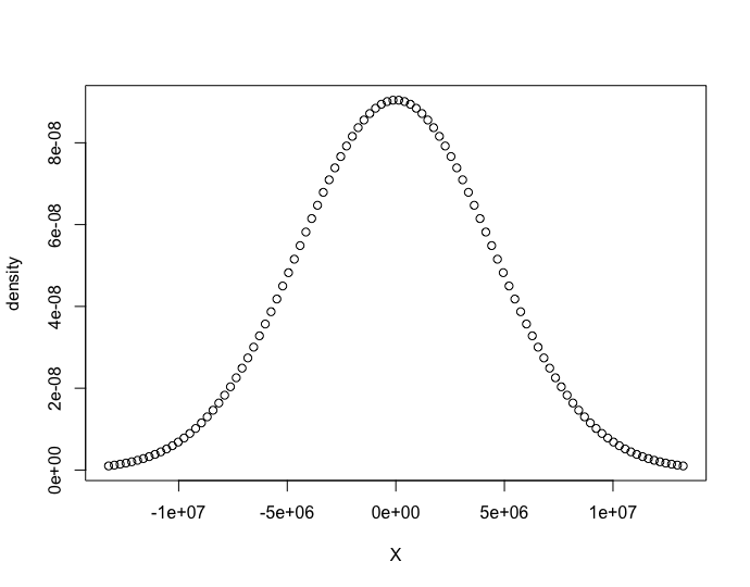 plot(x,d, xlab = "X", ylab = "density")我得到了.的输出。
