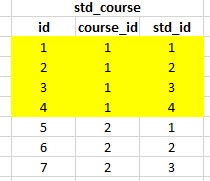 我想从table std_course获取记录,其中student作为1,2,3使用查询