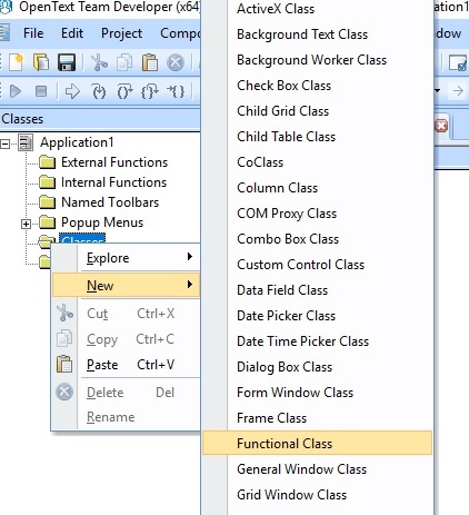 可以通过右键单击Teamdeveloper的“类”文件夹,然后从弹出菜单中选择“新功能类”来创建Functional。