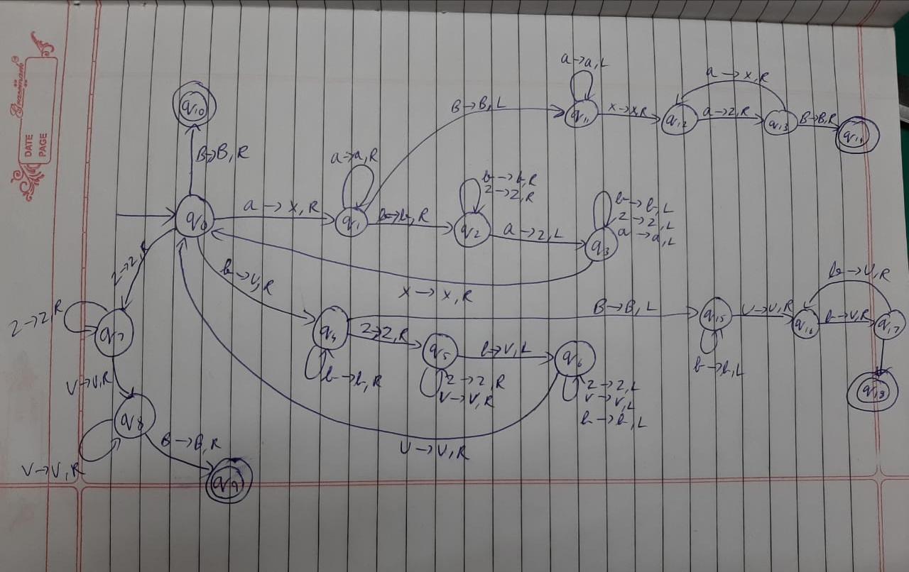 我在为语言L={a^m ^n^m^ b^n \ m,n≥0}制作图灵机时遇到困难。