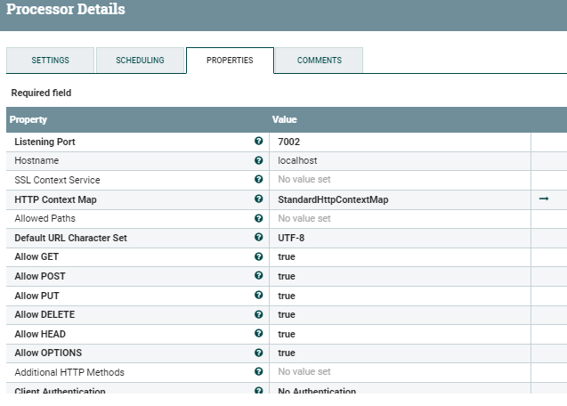 我有完全相同的两个处理器,另外,我还添加了一个HandleHTTPResponse,这样我的curl命令就可以整齐地退出,而不会发送额外的缓冲区消息,这些消息会导致EvaluateJSONPath组件由于无效的JSON错误而失败(我猜这也可能是您的情况)。HTTP请求流