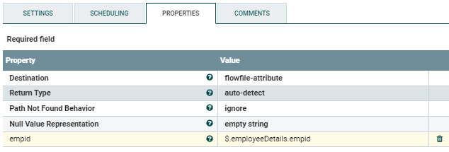 但是我想提取empid并检查json数据的empid是否为空,我尝试了"ExtractText","ReplaceText","UpdateAttribute","EvaluateJsonPath“和处理器来获取开发的详细信息,但是我无法做到。
