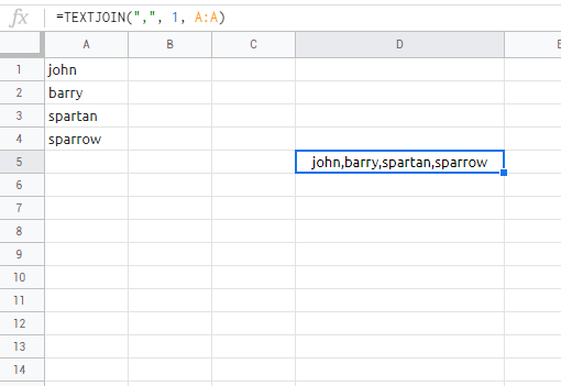 =TEXTJOIN(","; 1; A1:A3)https://stackoverflow.com/questions/58729038