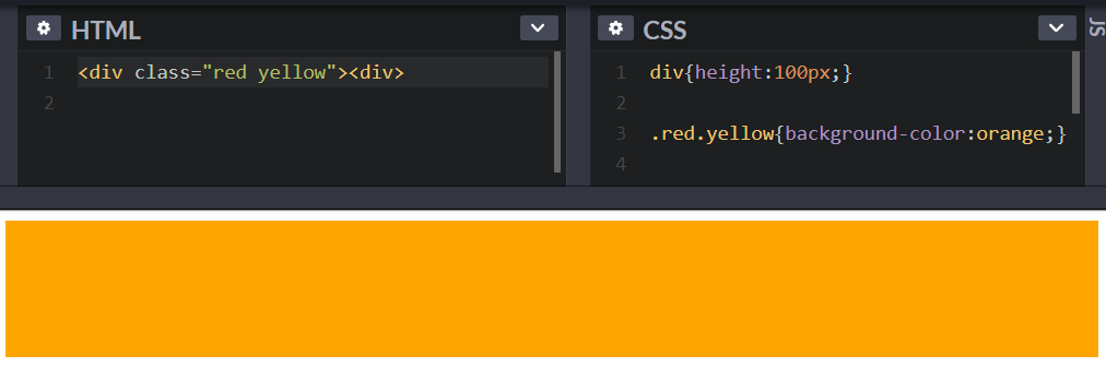 .red.yellow { background-color:orange; }<div class="red">Red</div>