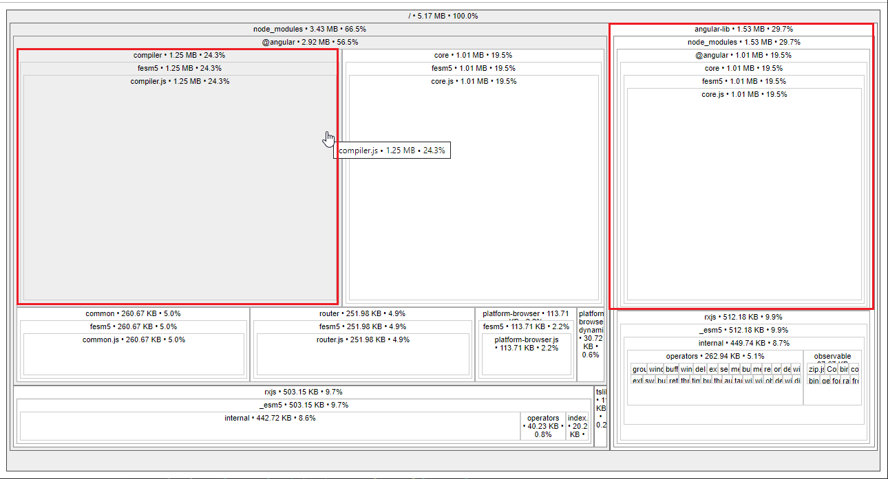 因为这将将angular-lib/node_modules文件复制到main/node_modules/angular-lib/node_modules,这就是为什么包文件中有两个角模块的原因。