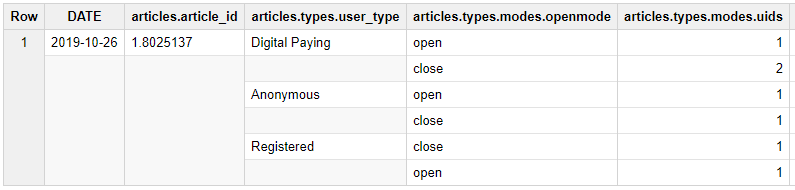 SELECT DATE, article_id, user_type, ARRAY_AGG(STRUCT(openmode, uids)) AS modes