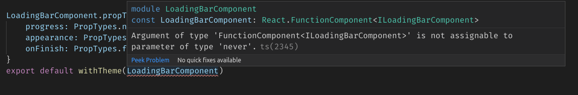 看来withTheme HOC只接受React.ComponentType作为参数,但是组件是使用React.FC (Functional )构建的。