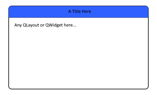 我需要实现一个有标题的QFrame (见图)。然而,在阅读了QFrame的文档并试图重新实现paintEvent(QPaintEvent*)方法之后,我没有找到任何解决方案。