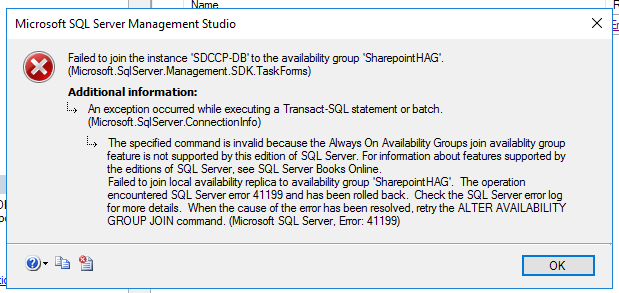 指定的命令无效,因为此版本的Server不支持“始终保持可用性”组加入可用性组功能。