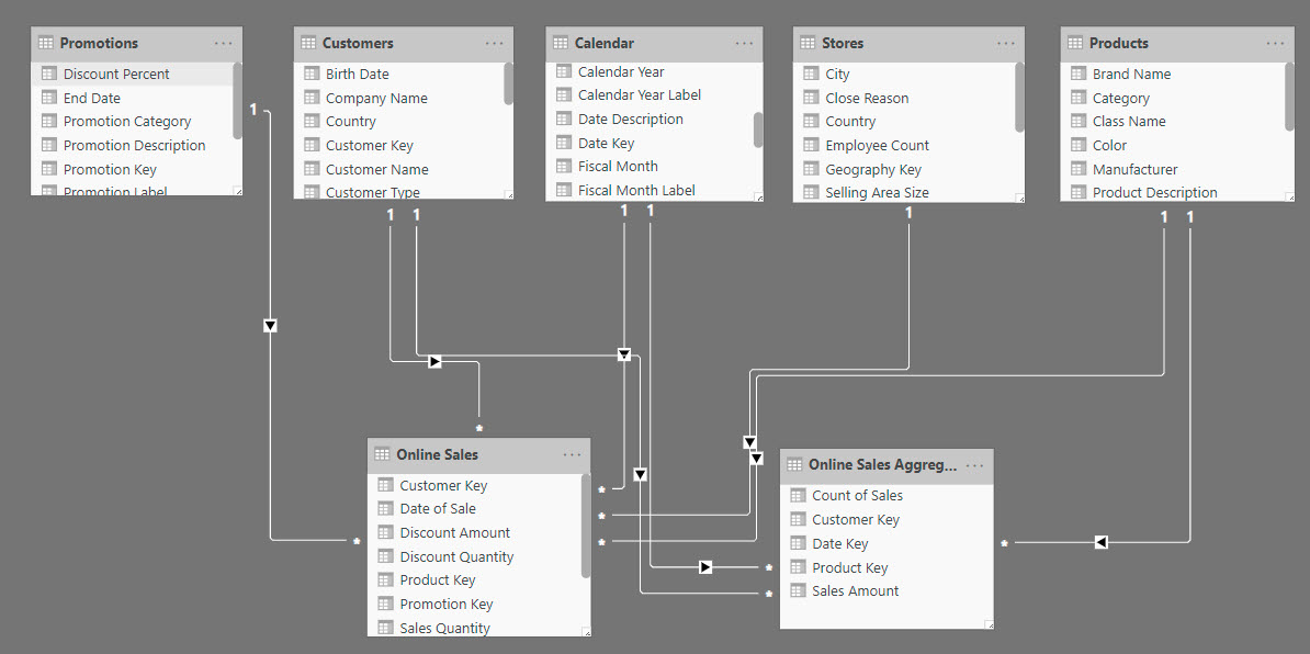 我有一个简单的数据模型,来自Contoso数据库,如下所示: