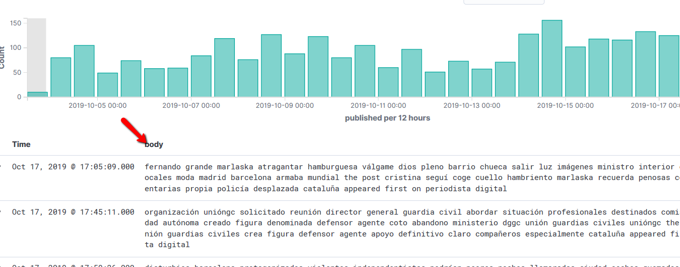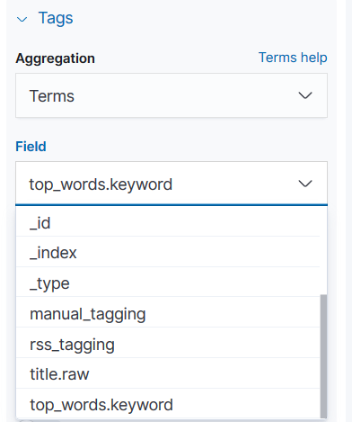 我对弹性和基巴纳很陌生。我正在基巴纳创建我的第一次视觉效果。我有一个包含以下字段的新闻索引: