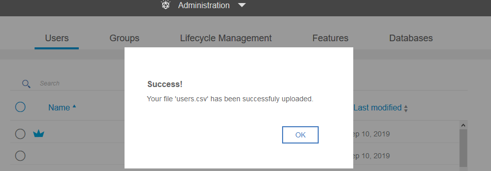 Your file 'users.csv' has been successfuly uploaded.<br>