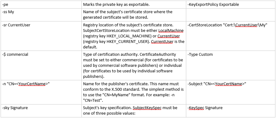 但我不确定这是对的。您能帮我把这个MakeCert命令翻译成命令吗?