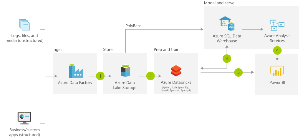 我正在为Power设计一个架构。我想这是在Azure数据湖商店gen1上做的: