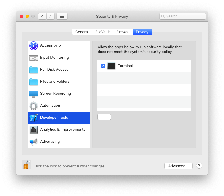 它要求我提供所有不同的可执行文件/编译器(例如arm-linux-androideabi-ranlib)。我通过去Security & Privacy并允许出现在那里的所有可执行文件来解决这个问题。有没有一种更通用的方式来授权android中的所有内容?