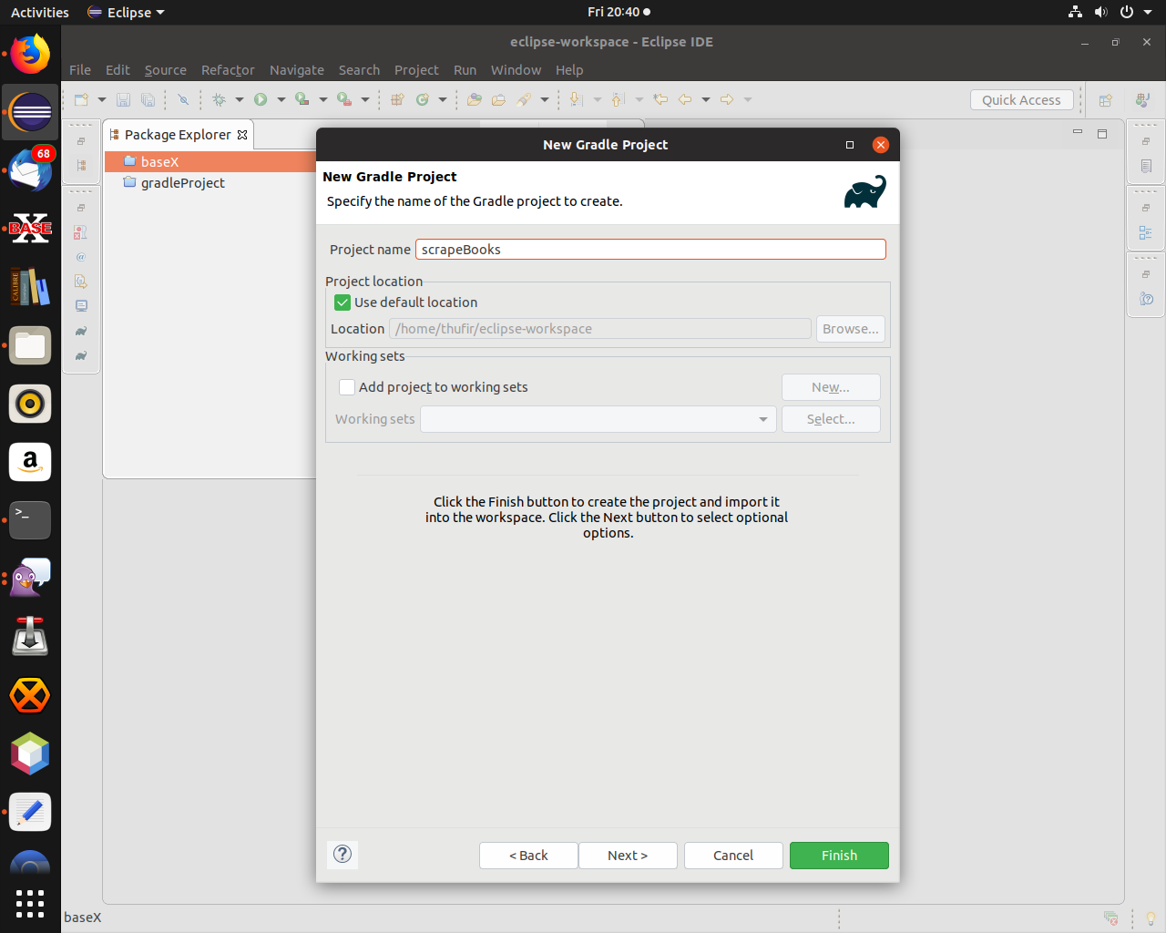 如何从Eclipse获得与使用gradle init --type java-application --test-framework testng --dsl kotlin的控制台相同的结果?