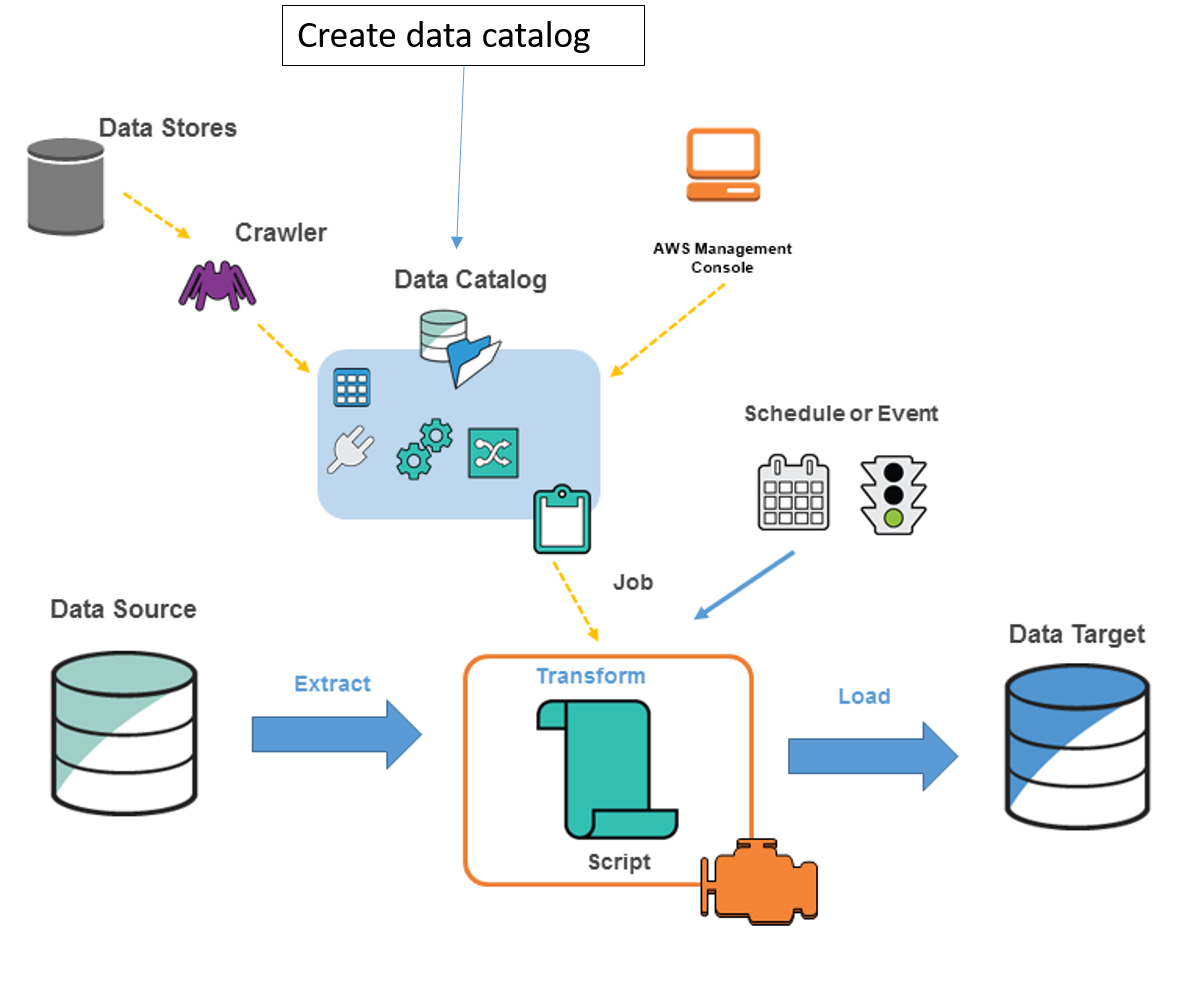 AWS Glue data Catalog由有关AWS中各种数据源的元信息组成,例如S3、DynamoDB等。您可以使用与不同结构(如数据库、表等)相关的AWS胶API直接填充数据目录,而不是使用Crawler或AWS控制台。AWS为不同语言提供了几个SDK,例如用于python的boto3,以及易于使用的面向对象的API。因此,只要您知道数据结构如何,就可以使用方法