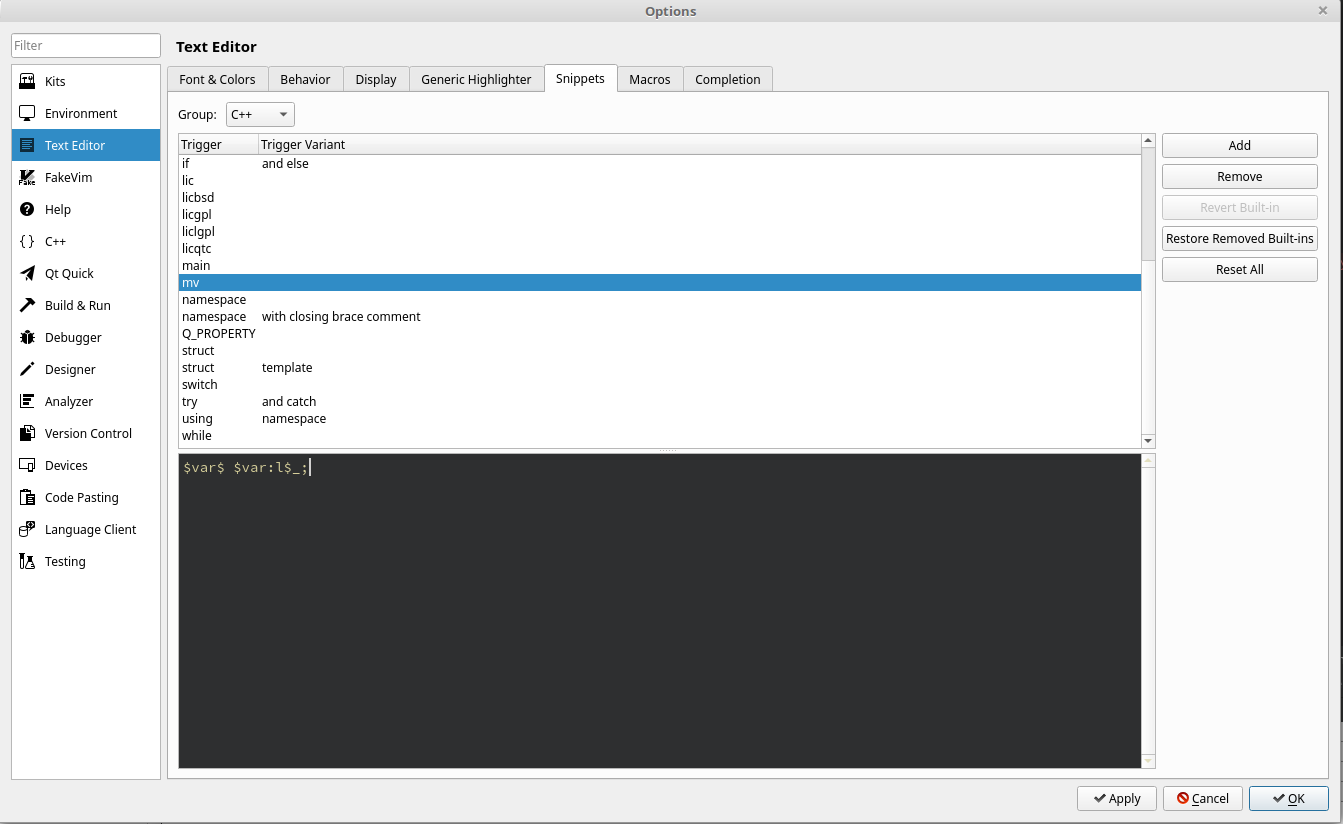 是否可以将QtCreator配置为自动建议给定变量的名称?