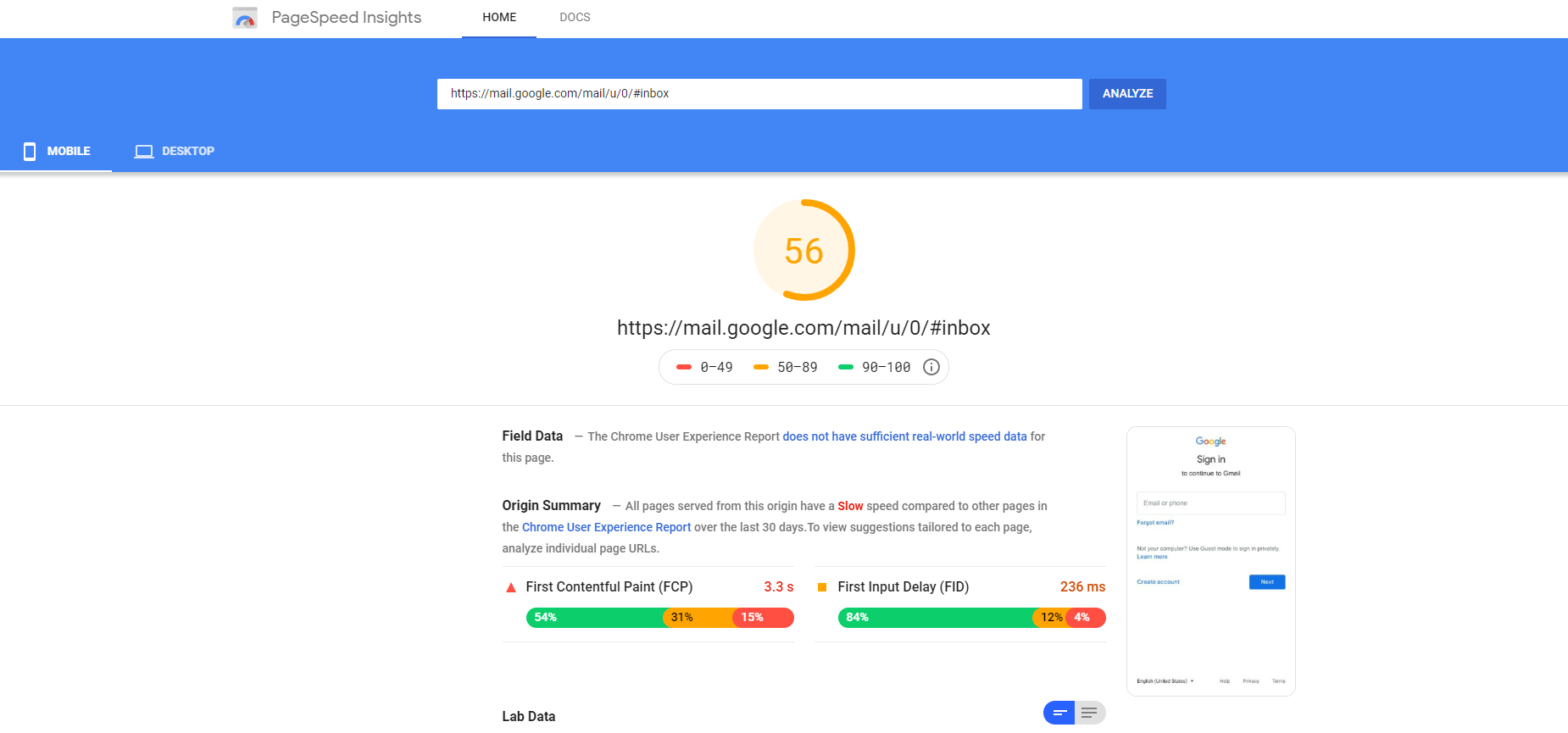 我想在认证墙后面运行灯塔审计。例如,下面我尝试使用PageSpeed链接运行灯塔,这个URL通常会解析到我的Gmail帐户。然而,如下图所示,灯塔审计是针对页面中的标志运行的,而不是我的Gmail。