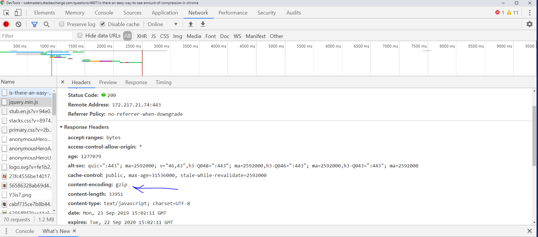 在“响应头”下,您应该看到“内容-编码: gzip”。