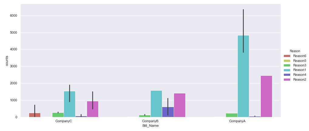 g = g.map(sns.catplot, x='Bill_Name', y='counts', hue='Reason',